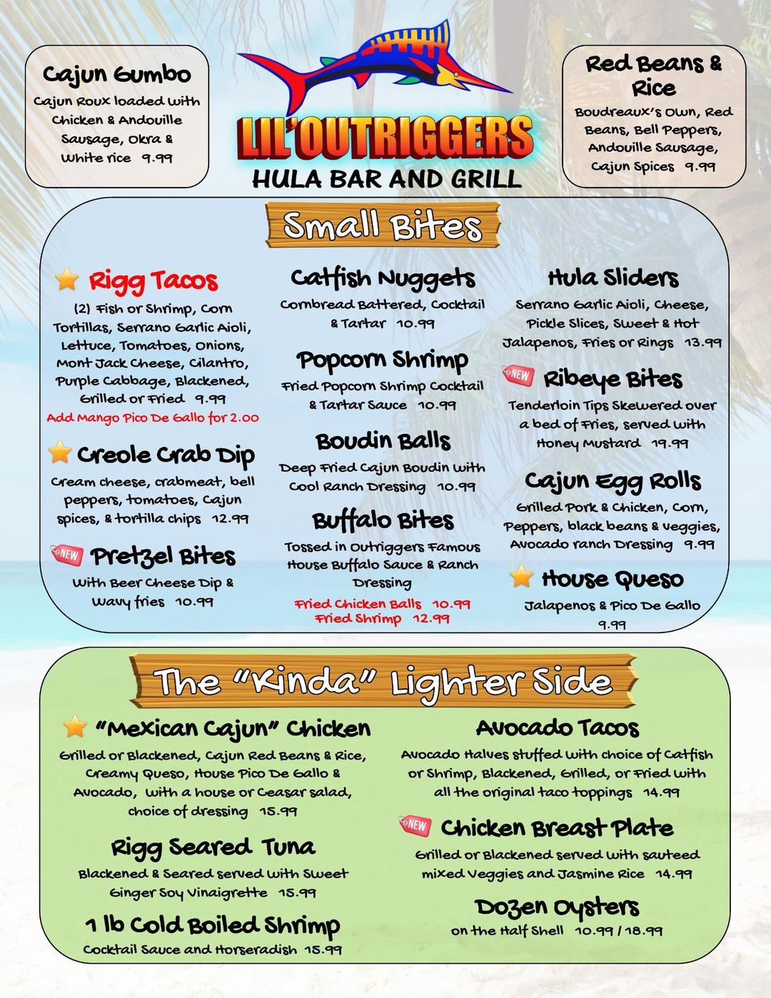 Lil Outriggers Hula Bar & Grill Menu Across the Street from Schafer's 822 Clear Lake Rd.Clear Lake Shores, TX 77565 Contact Info [email protected]281-549-4617 Send us a Message Name *Email Address *Phone NumberMessage0 / 180 Send Message Location